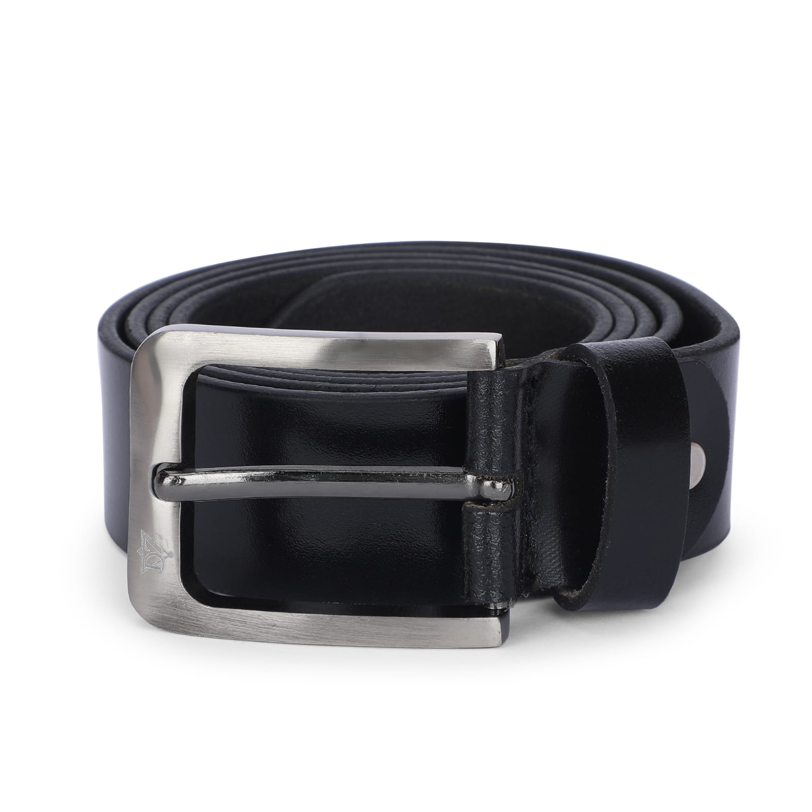 Men’s Black Shiny Genuine Leather Belt With Silver Finished Buckle