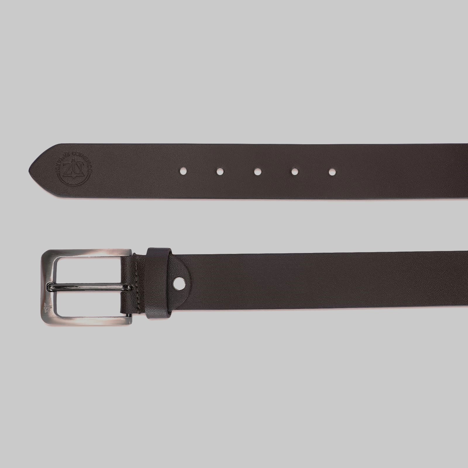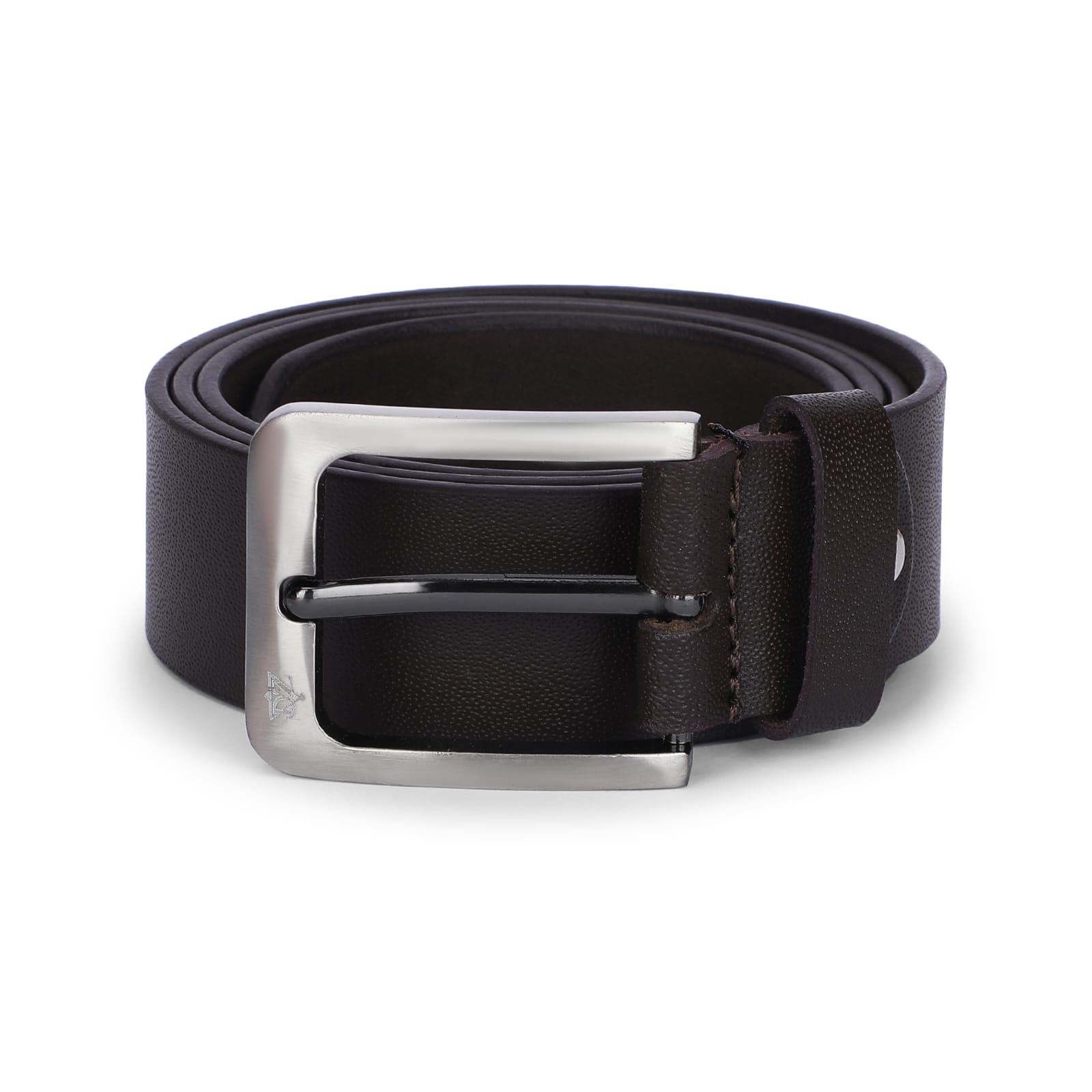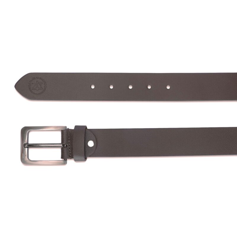 Mens brown genuine leather belt with silver finished buckle